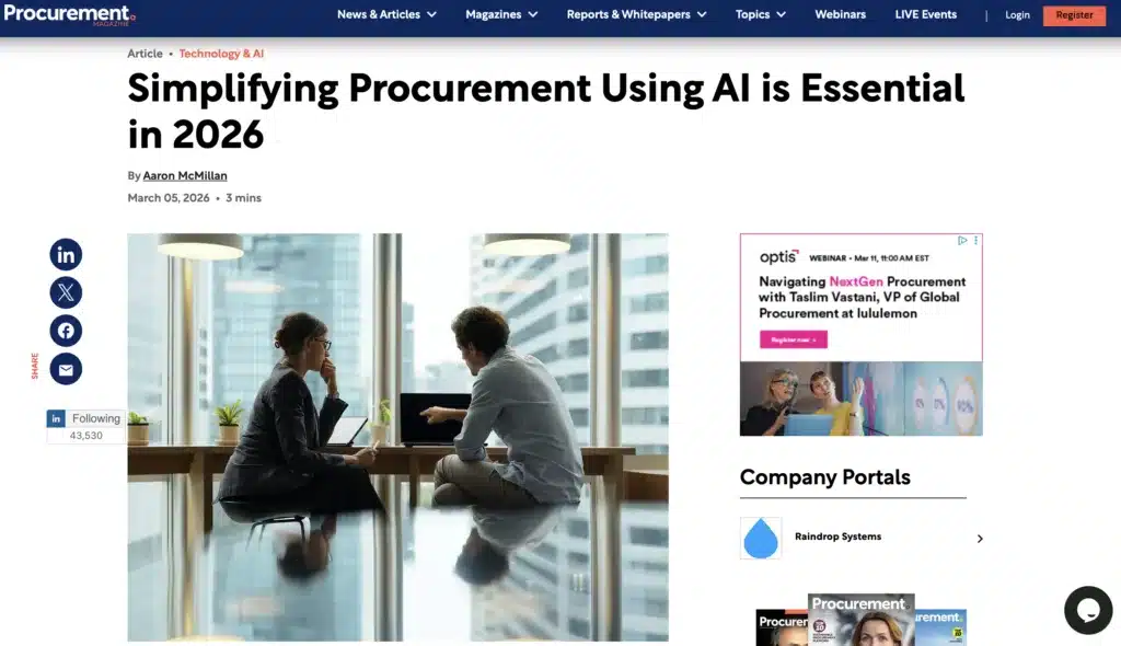 AI-powered procurement platforms like Raindrop Systems integrate these automations directly into daily finance workflows, reducing reliance on spreadsheets and disconnected tools.