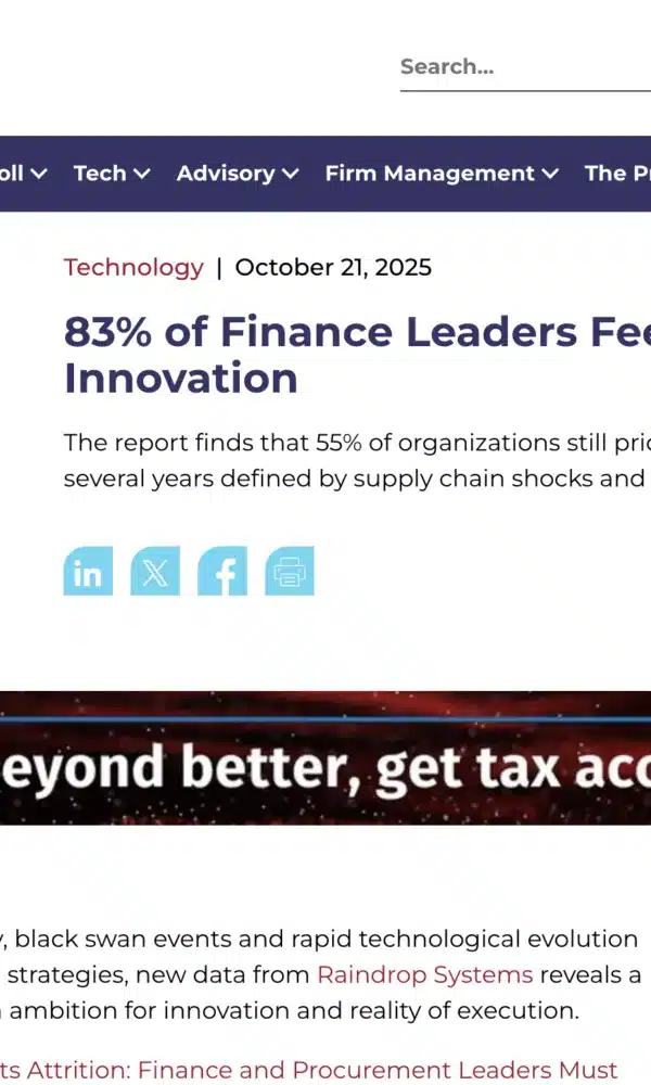 Raindrop Report Featured in CPA Practice Advisor: 83% of Finance Leaders Feel Responsible for Innovation