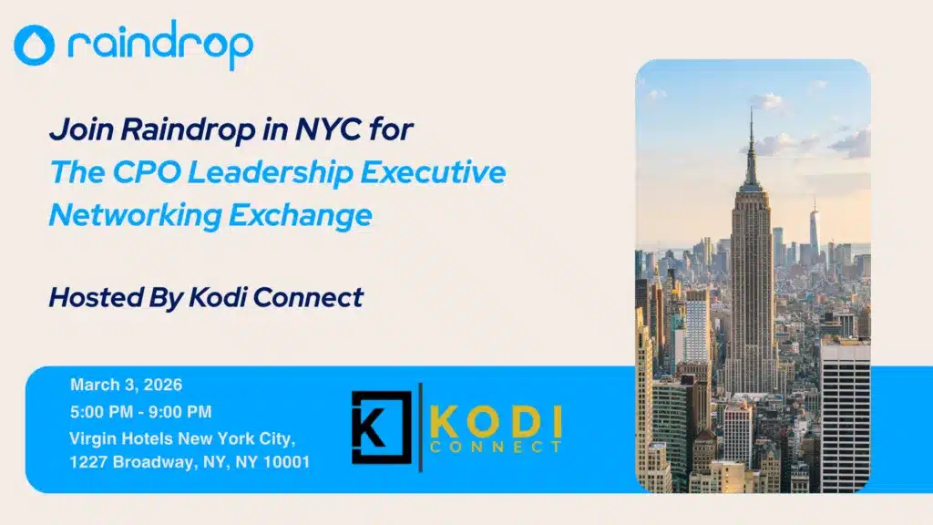 At the Kodi Connect CPO Leadership Executive Networking Exchange, Raindrop is proud to contribute to the evening’s strategic dialogue through a focused thought leadership session exploring how today’s CPOs are evolving from cost stewards to enterprise value drivers in an AI-native world. We’ll discuss how modern Procurement organizations are strengthening supplier management, improving visibility, and enabling faster, evidence-based decisions through structured, data-driven systems. Following the program, Raindrop will host an invitation-only private dinner, creating an intimate setting for deeper executive conversation around Procurement transformation, leadership priorities, and the challenges shaping 2026 and beyond.