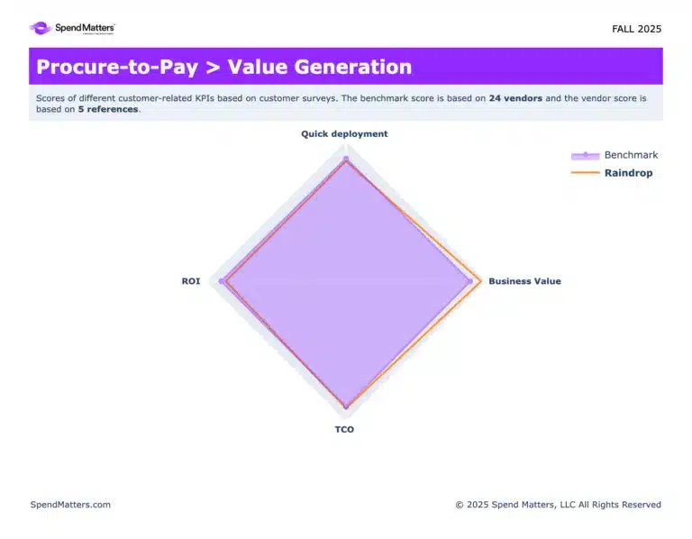 Our customers had a lot to say when it came to rating Raindrop solutions for the Spend Matters Fall 2025 SolutionMap. Participants, like Raindrop, are scored on technical capability and customer ratings; we think the results speak for themselves.