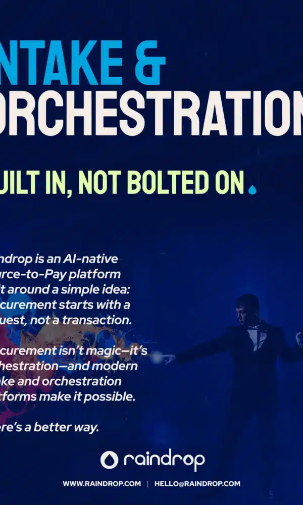 Intake & Orchestration Built In, Not Bolted OnShannon KrepsApril 7, 2026Intake & orchestration built in, not bolted on Raindrop is an AI-native Source-to-Pay platform built ... Read More